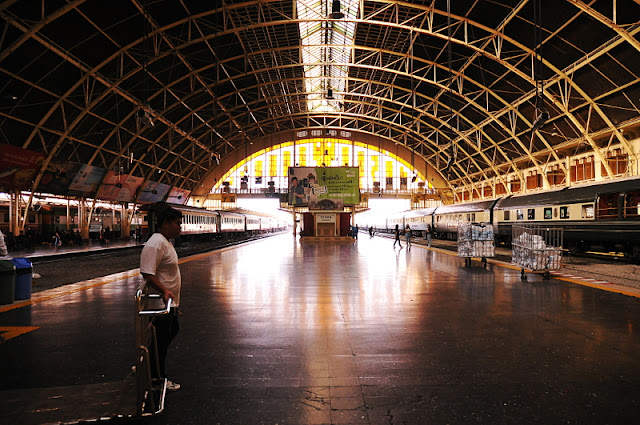 Z Bangkoku do Ayutthaya można dotrzeć samochodem, autobusem, łodzią lub pociągiem. Ten ostatni środek lokomocji był dla nas najbardziej atrakcyjny, ponieważ nie planowaliśmy w kolejnych tygodniach przemieszczać się pociągiem po Tajlandii, a dobrze wiedzieć jak taka jazda wygląda.